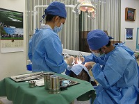 - 麻酔をして顎の骨にインプラントを埋め込みます。7~10日後に抜糸します。